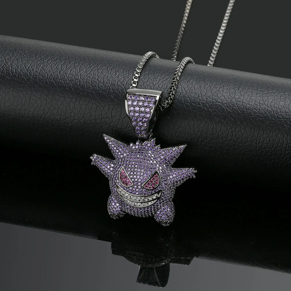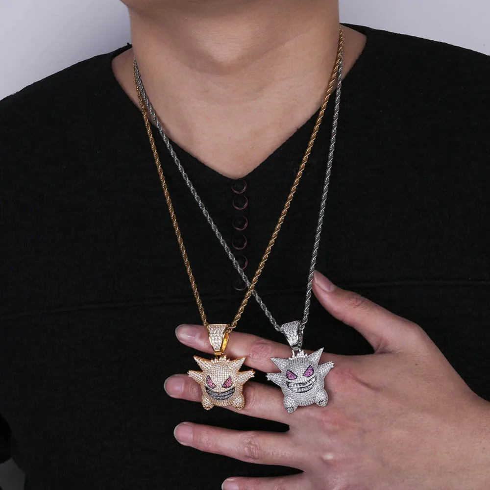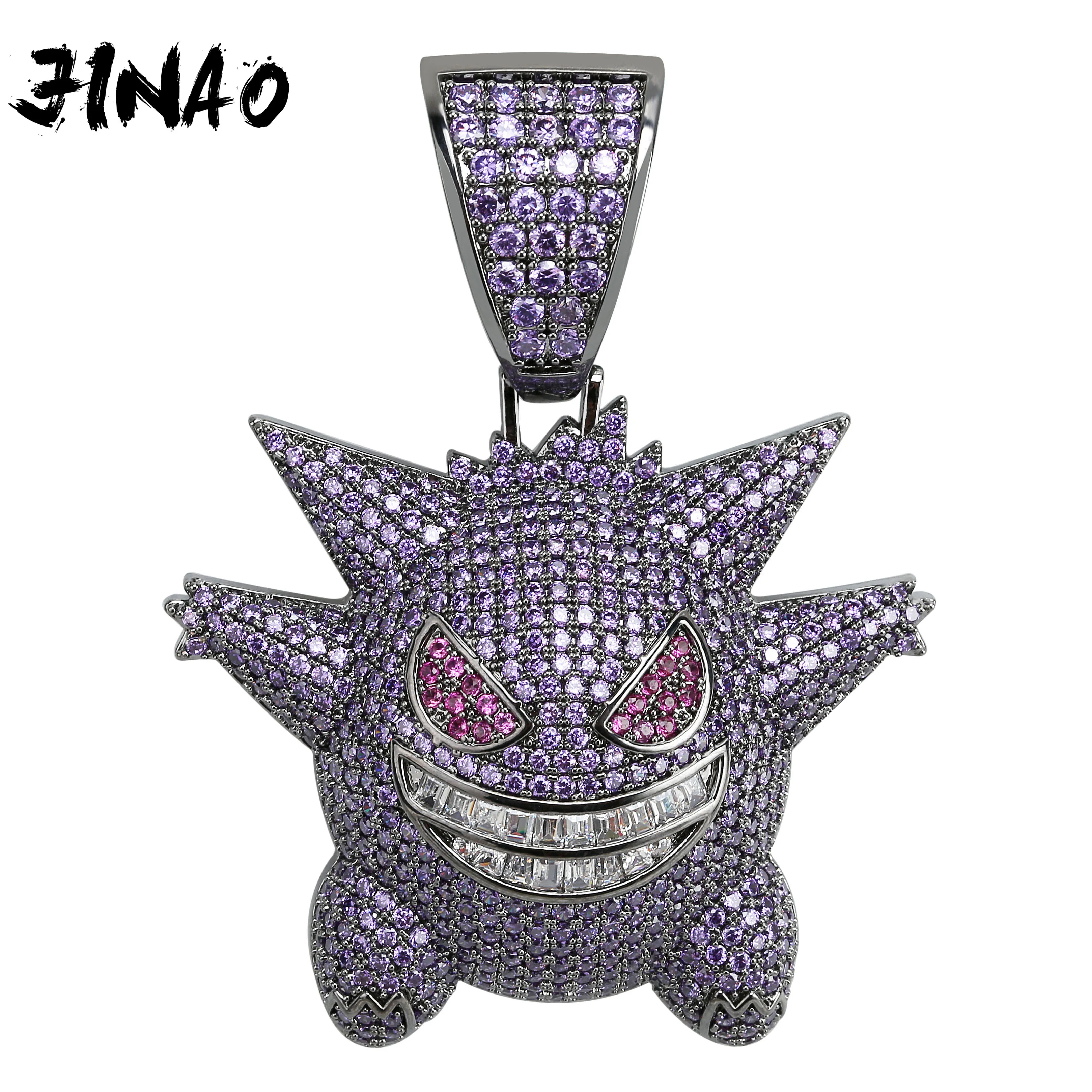 Finest JINAO Hip Hop Jewelry Mask Gengar Necklace New Arrival Pokemon Pendant Cubic Zircon Copper Necklace
