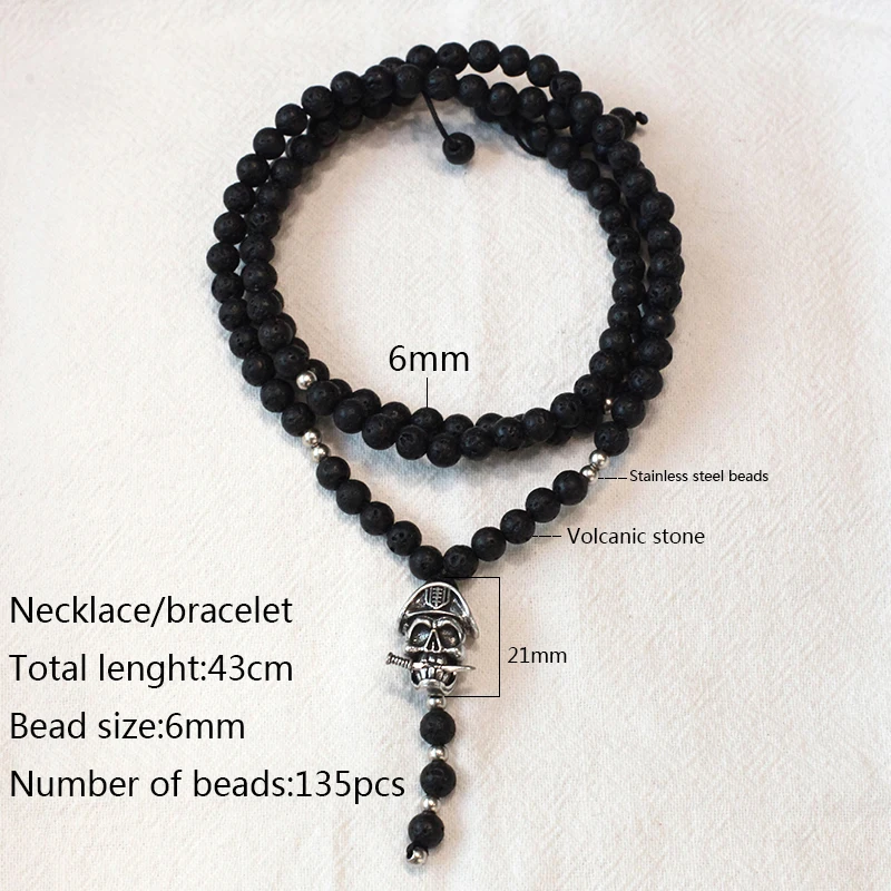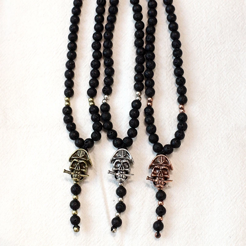 discounted Mcllroy Natural stone Necklace for women/men retro lava bead long necklace skull/viking pendants ne