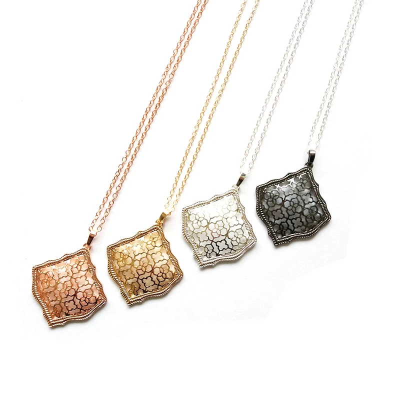 Finest 2019 New Square Filigree long statement Kite pendant tassel necklace women