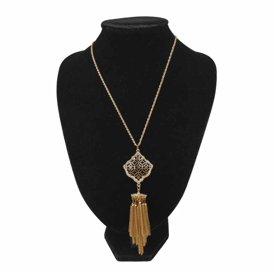 astounding 2019 New Square Filigree long statement Kite pendant tassel necklace women