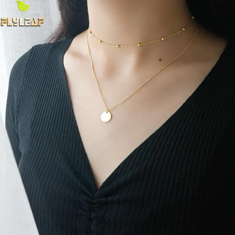 astounding Flyleaf Double Chain Sequin Choker Necklace Women 2018 New Trend 100% 925 Sterling Silver Lady Fash