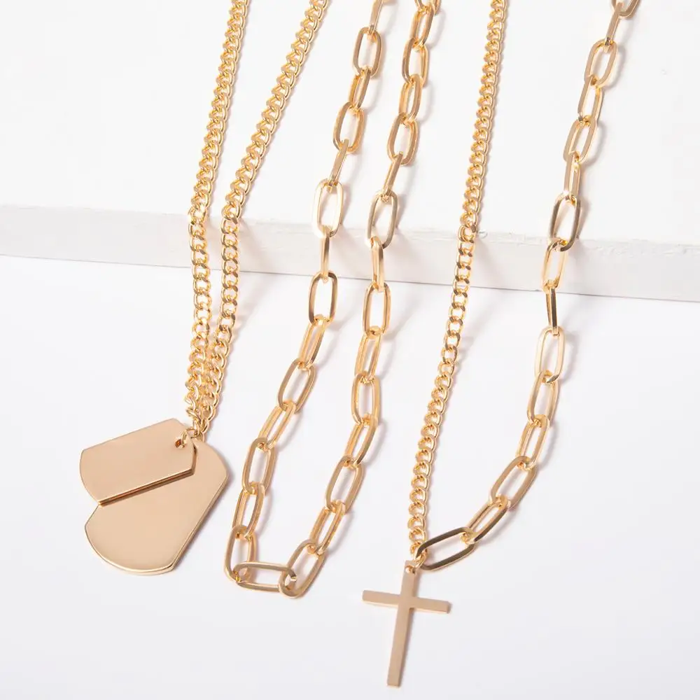 Finest Punk Boho Layered Cross Choker Necklace Collares Hip Hop Stainless Steel Steampunk Pendant Long Cha