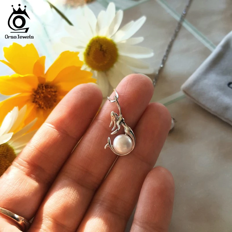 Best ORSA JEWELS 925 Sterling Silver Women Necklaces&Pendants Freshwater Pearls Unique Mermaid Pendants