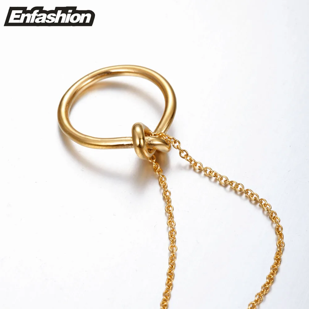 incredible Enfashion Classic Knot Pendants Necklaces Stainless Steel Gold color Choker Necklace For Women Long