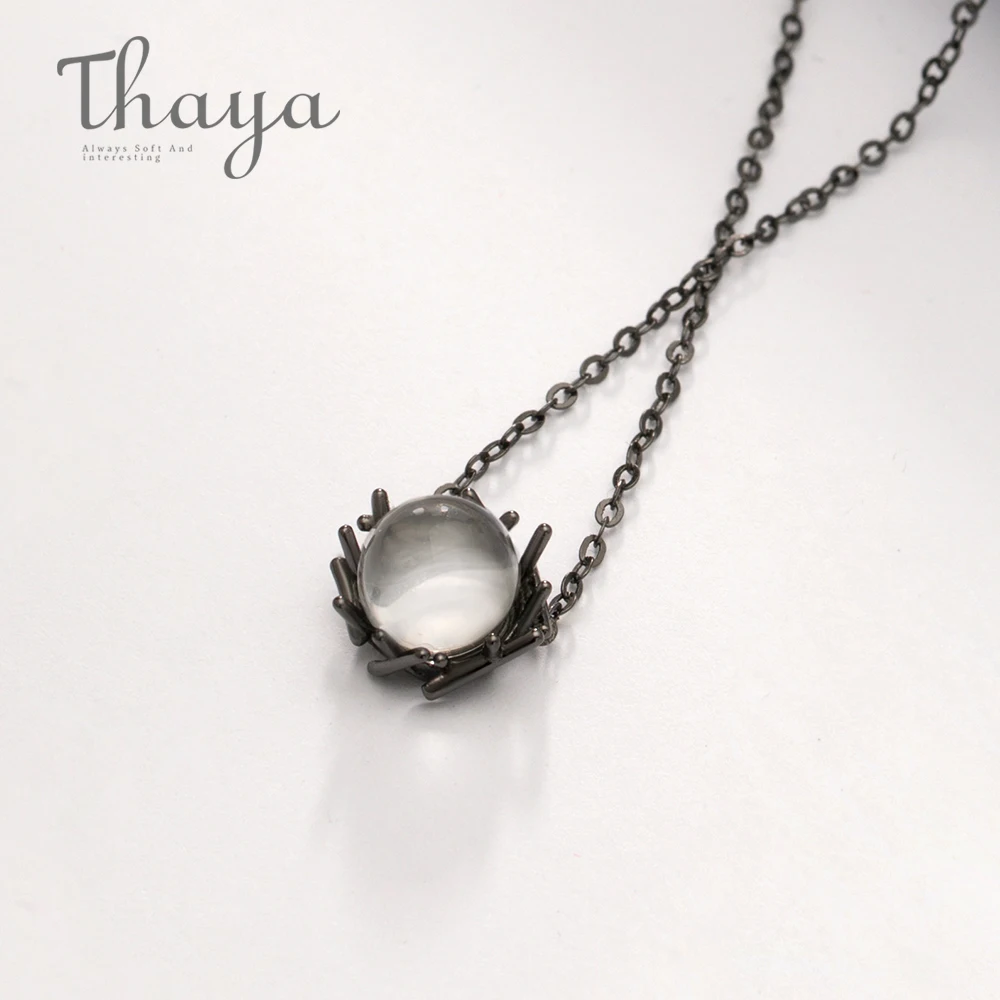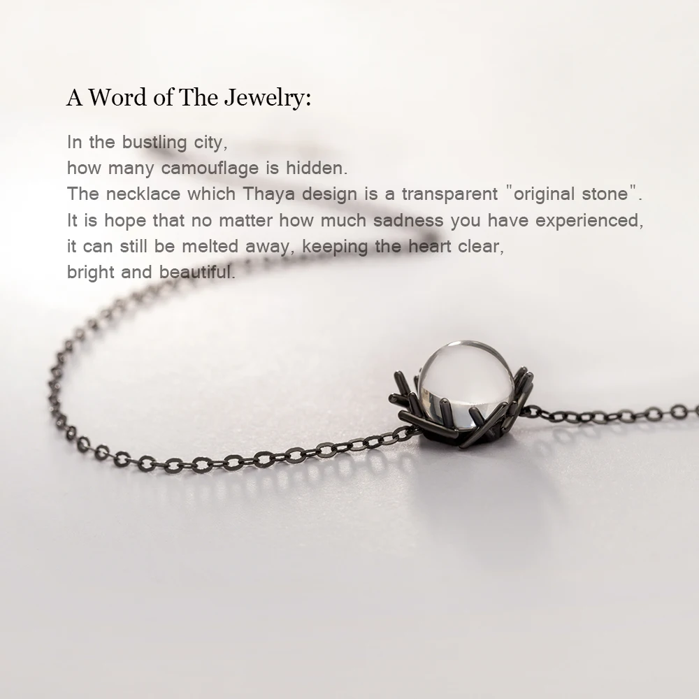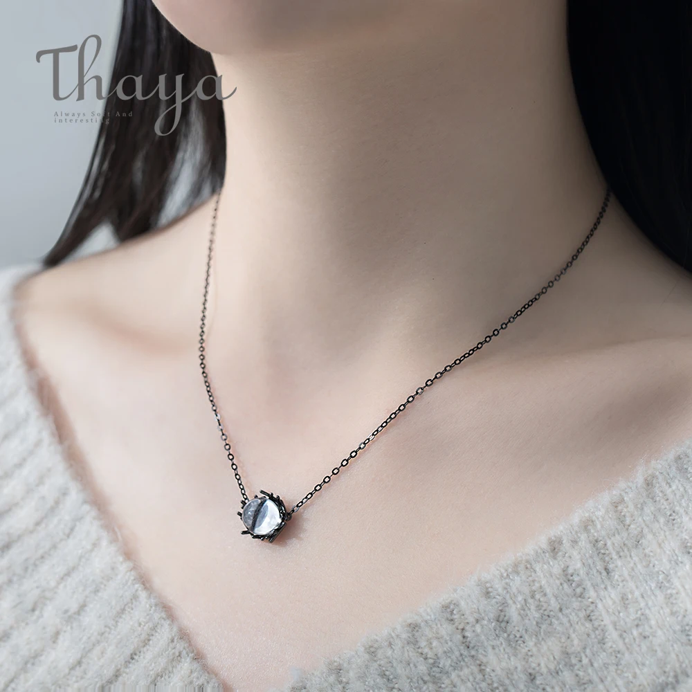 Ideal Thaya Natural Crystal s925 Silver Necklace Black Chain Nest Type Pure Gemstone Pendant Necklace for