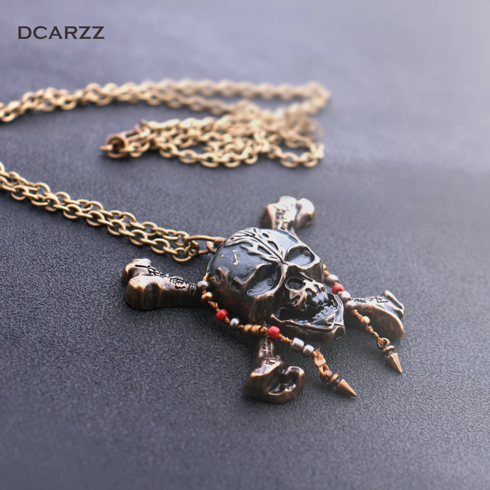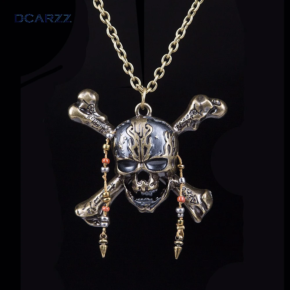 incredible Pirates of the Caribbean 5 Necklace Dead Pirate Skull Capitan Pendant with Beads Handmade DIY Long