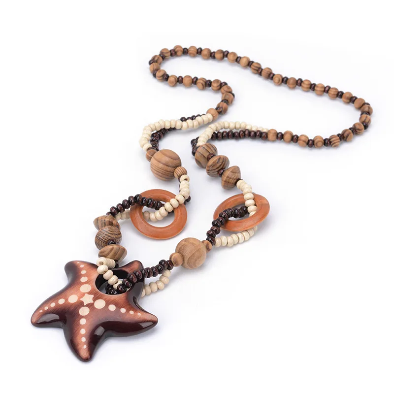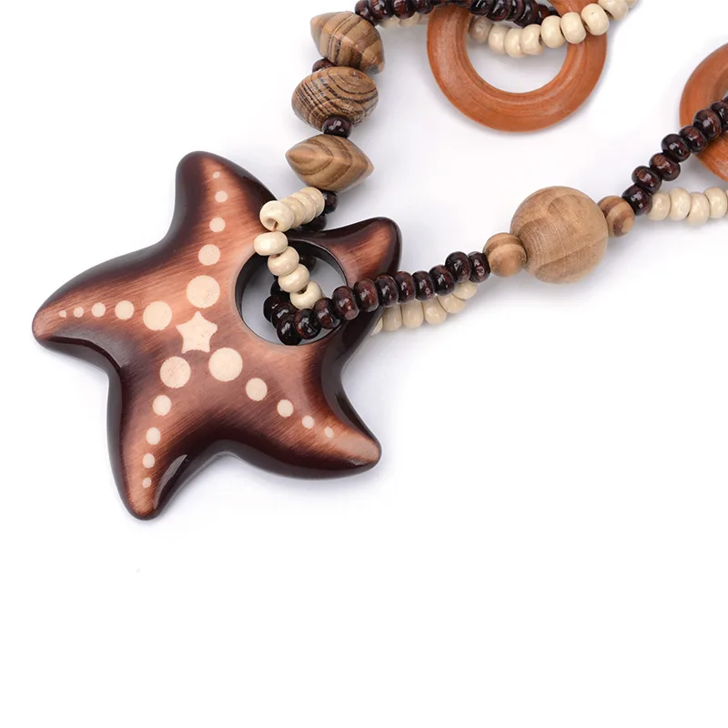 incredible Vintage Bohemian National Wind Ocean Starfish Woody Beaded pendant necklace Women Fashion Jewelry B