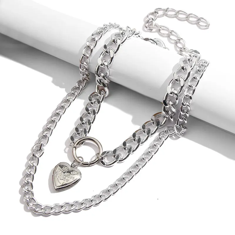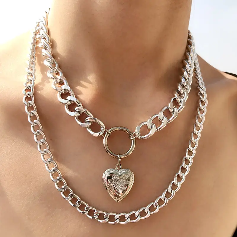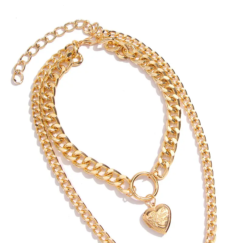 Finest JUST FEEL Multi Layer Baroque Thick Chain Necklace Collares Punk Gold Heart Pendant Choker Necklace