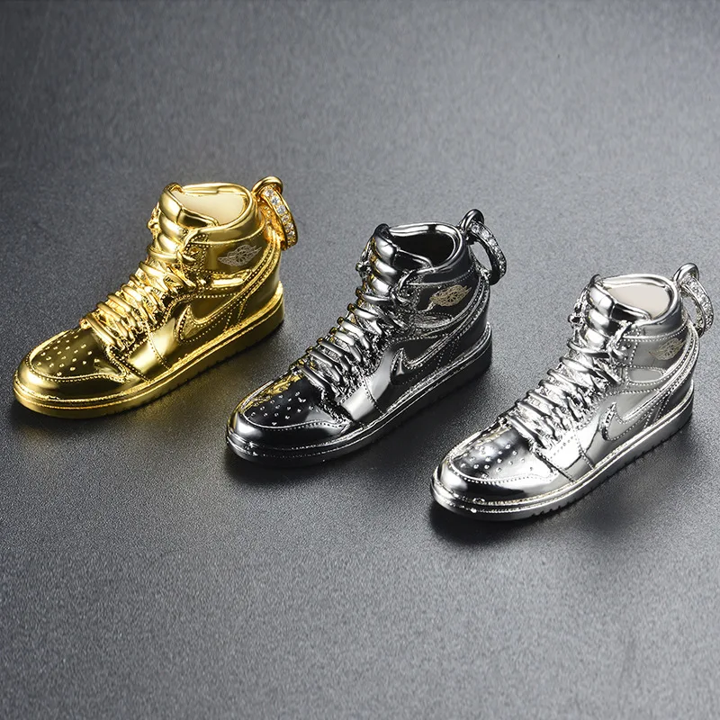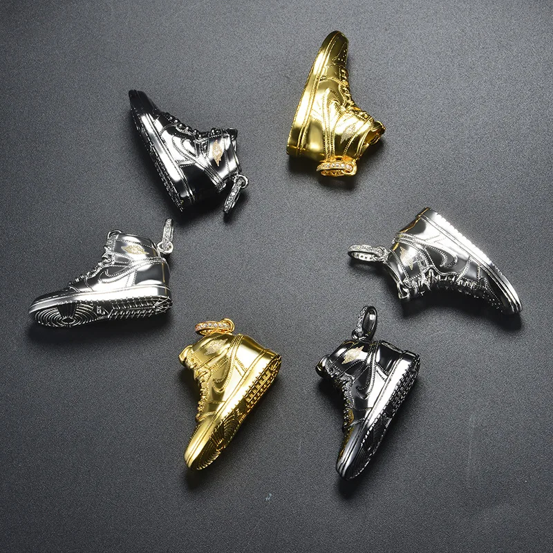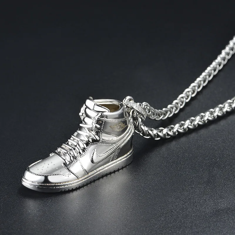 incredible 925 Sterling Silver Gold Black AJ Air Shoe Jordan Mini Sneaker Model Pendant Hip Hop Long Chain Nec