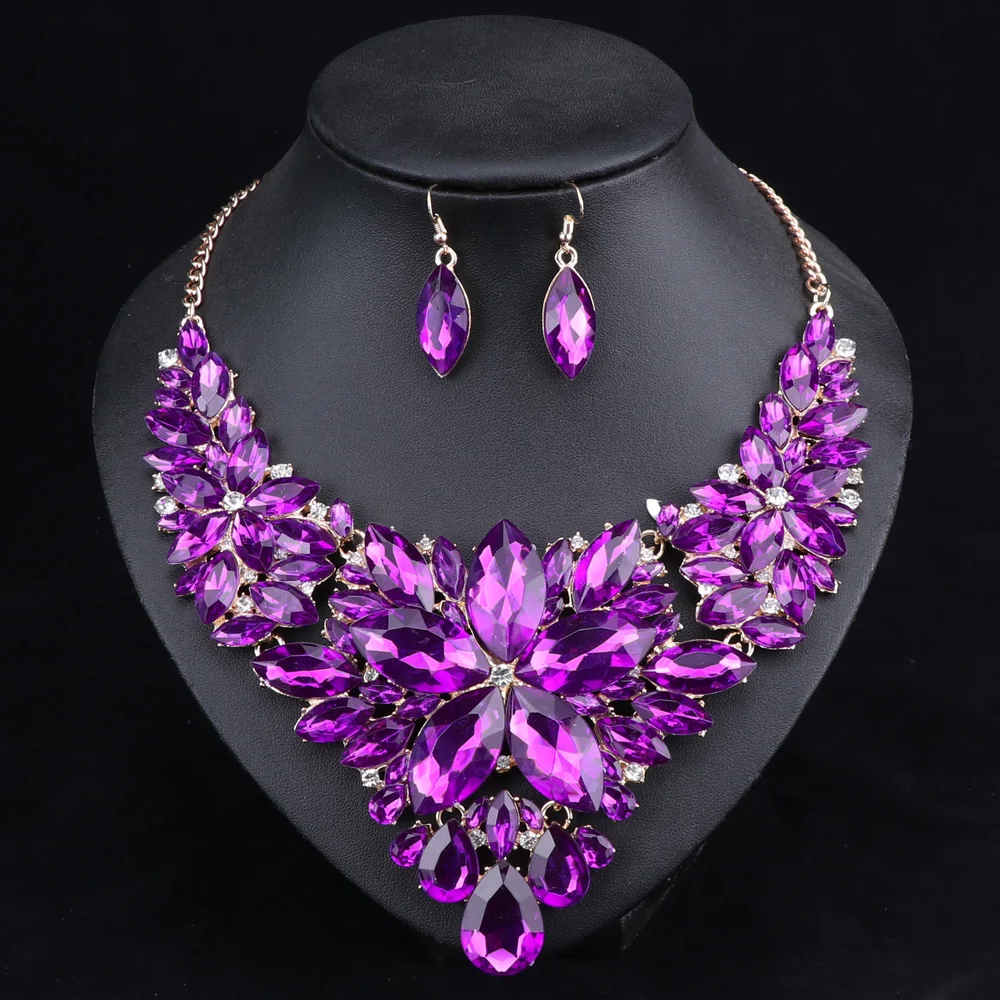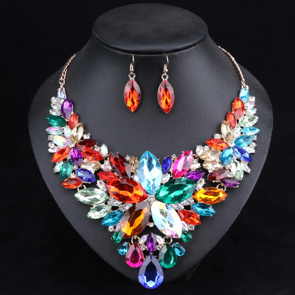 lower price Fashion Crystal Jewelry Sets Bridal Necklace Earrings Sets Wedding Party Jewelery Dress Jewellery D