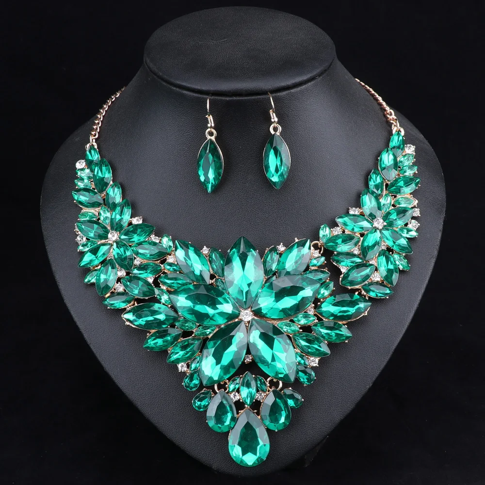 Crystal Bridal Jewelry Sets Gold Color Swan Pendant Necklace Women Gift Party Wedding Prom Necklace Earring Accessories,New Green Crystal Statement Necklace Earrings Set Gold Color Jewelry Sets Indian Bridal Wedding Costume Jewellery, New Green Crystal Statement Necklace Earrings Set Gold Color Jewelry Sets Indian Bridal Wedding Costume Jewellery