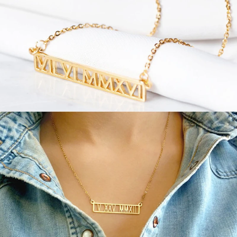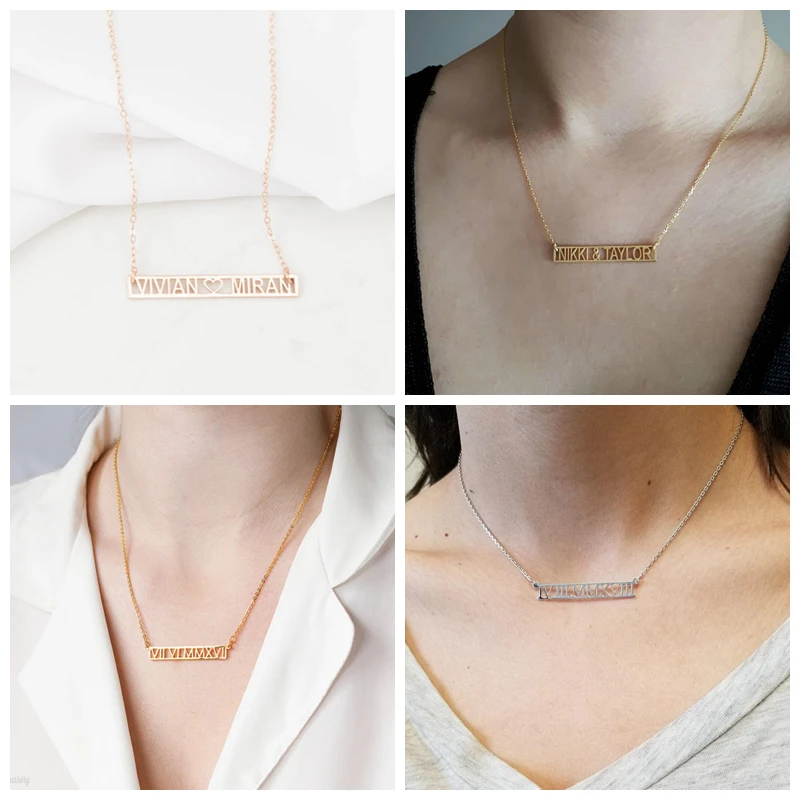 awesome Statement Personalized Couple Names Charm Necklaces Custom Roman Numeral Date Greek Letters Hollow