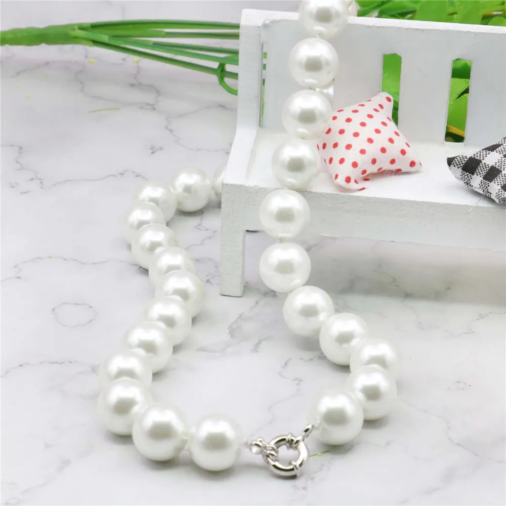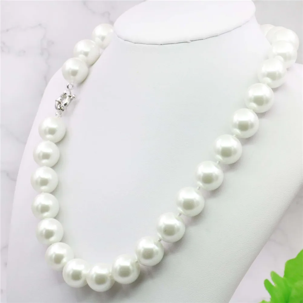 Most effective New 14MM Round White Sea Shell Pearl Necklace Women Girls Gifts Beads Round Stone Ornaments Beads F