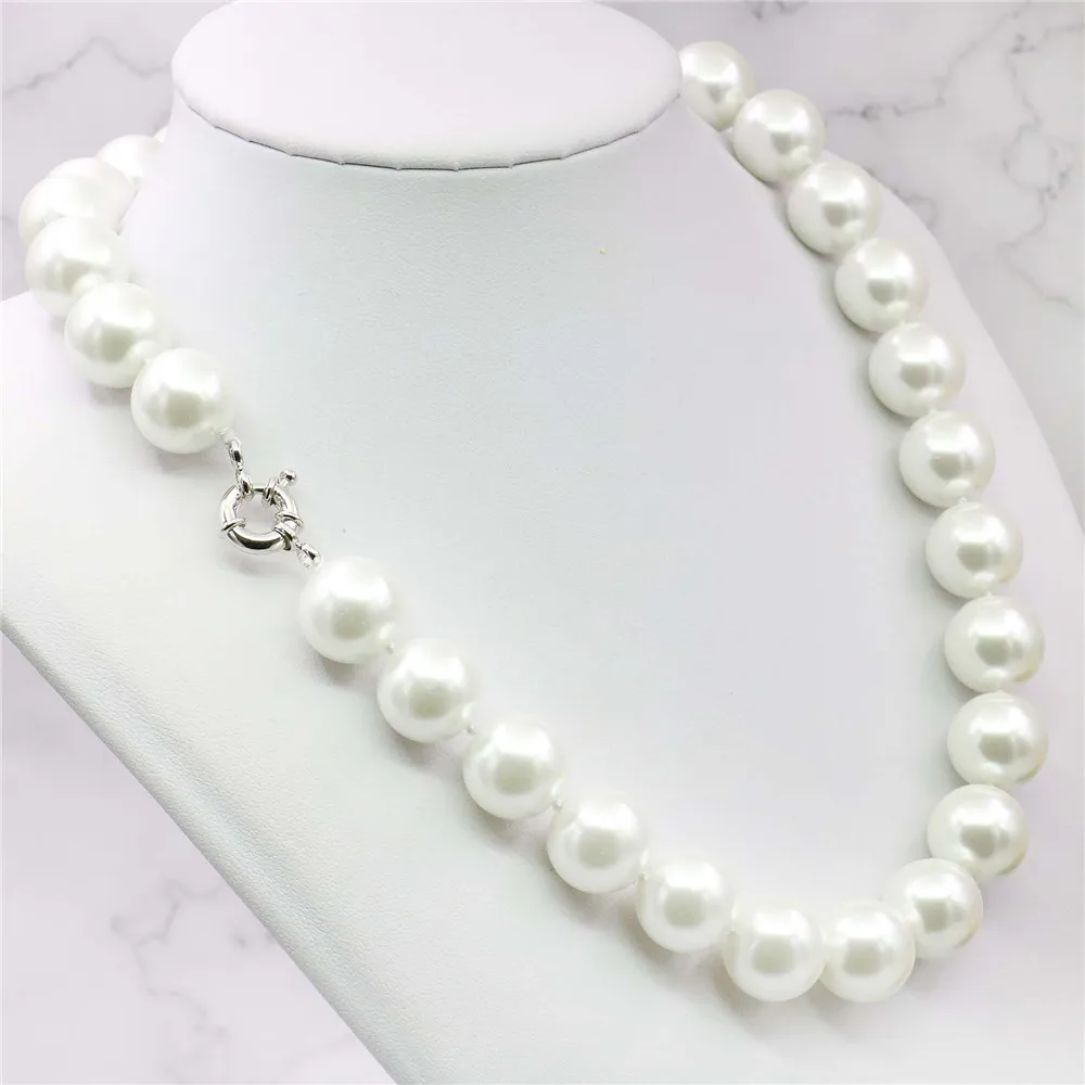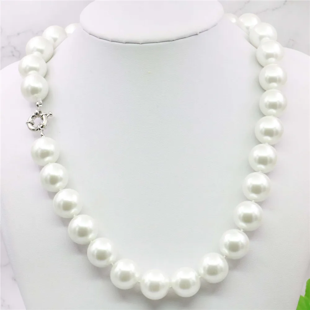 incredible New 14MM Round White Sea Shell Pearl Necklace Women Girls Gifts Beads Round Stone Ornaments Beads F