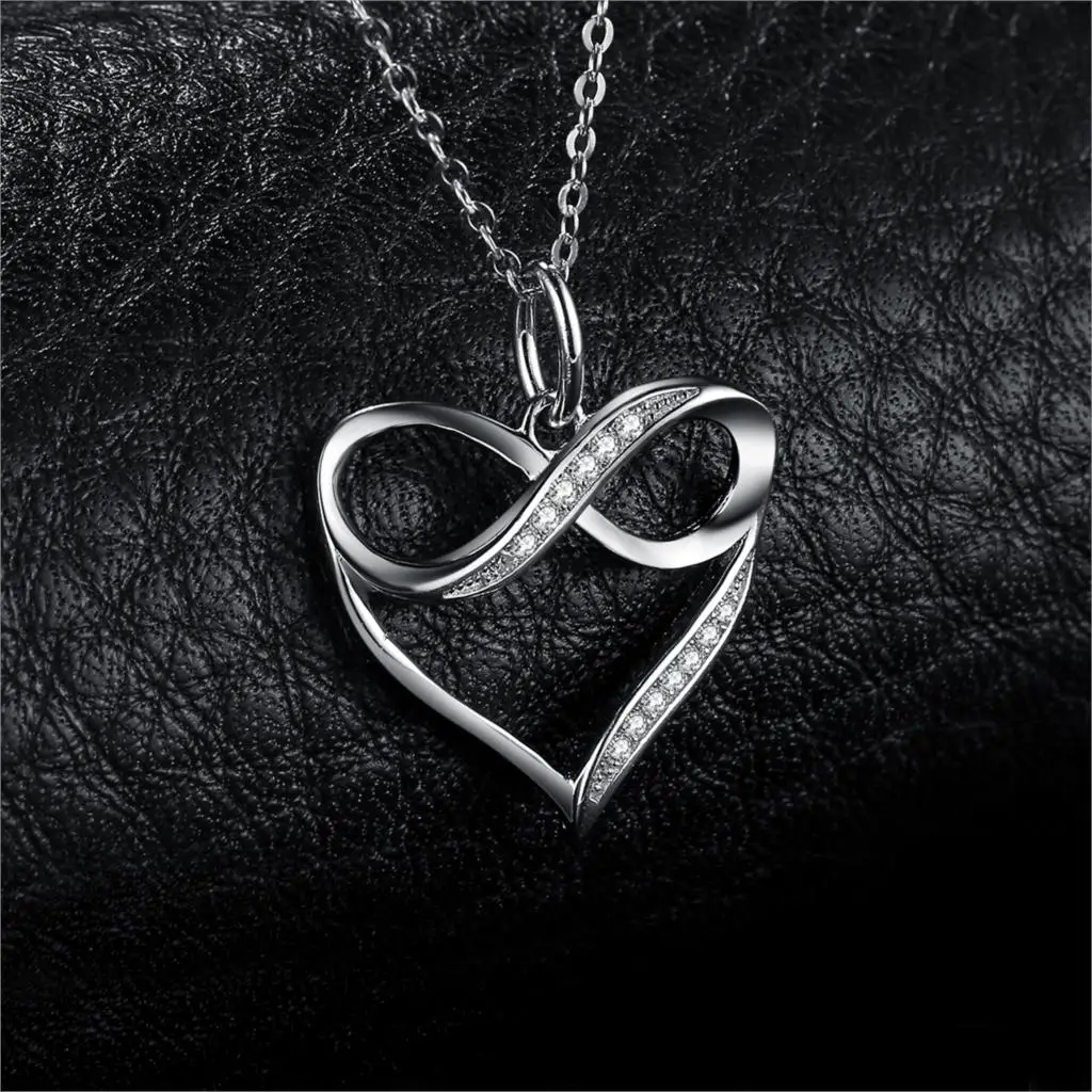 Greatest Infinity Love Heart Silver Pendant Necklace 925 Sterling Silver Choker Statement Necklace Women Sil