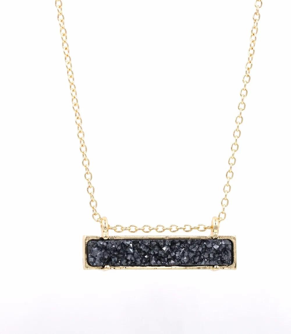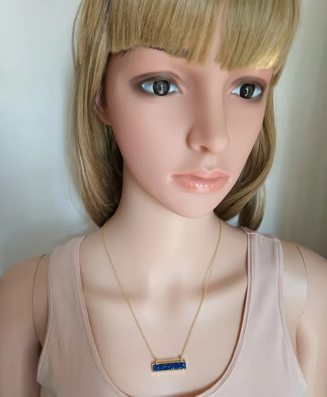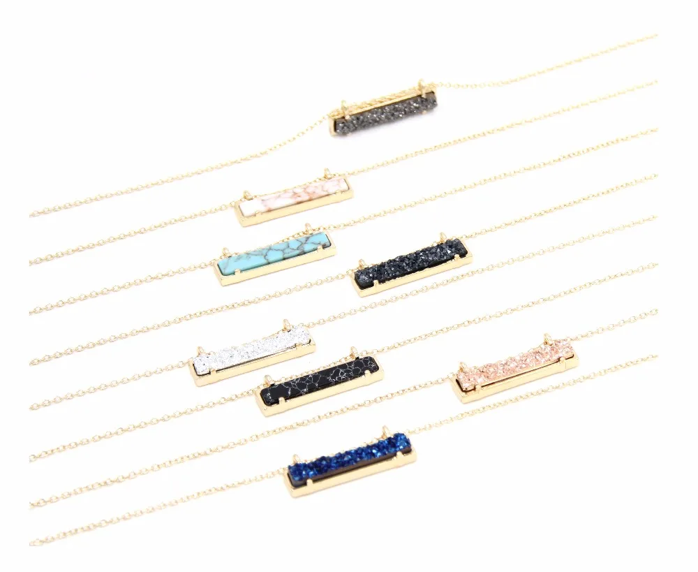 price reduction Bar Style Square Geometric Resin Druzy Blue Marble Stone Insert Choker Necklace Pendants
