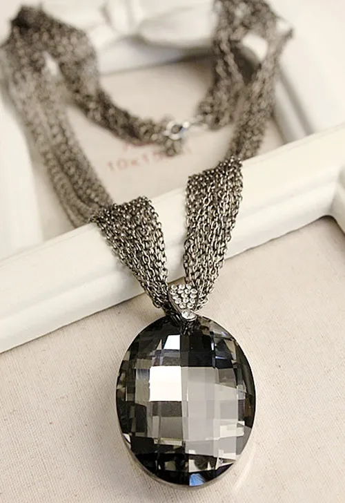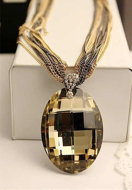 Europe Fashion Crystal Jewelry Accessories, Austrian Crystal Bead Long Necklace Sweater Chain Necklaces & Pendants For Women,Fashion Big Glass Crystal Pendant Necklace Statement Chunky Multi-Chain Short Necklace New Luxury Crystal Stone Necklace X1618, Fashion Big Glass Crystal Pendant Necklace Statement Chunky Multi-Chain Short Necklace New Luxury Crystal Stone Necklace X1618