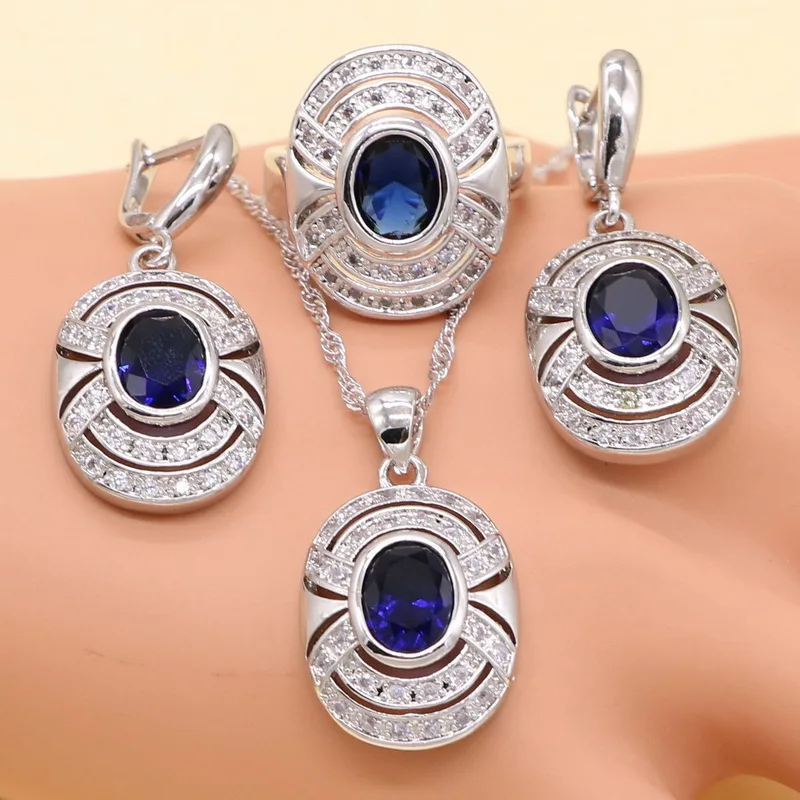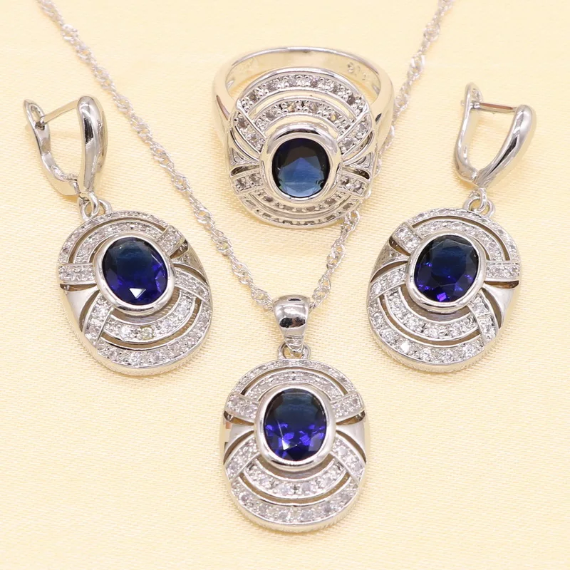 amazing XUTAAYI 925 Silver Jewelry Sets For women Blue Cubic Zirconia White crystal Fancy Wedding Necklace/